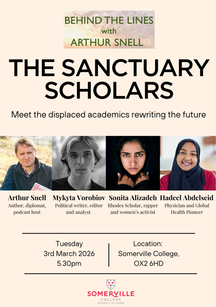 The Principal of Somerville College is delighted to invite members of Somerville College and the wider University to a live recording of Arthur Snell’s geopolitics podcast Behind the Lines.